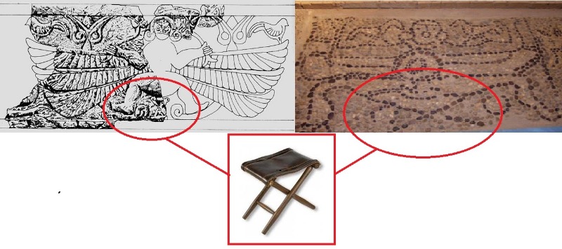 En el mosaico del Cerro Gil en Iniesta aparece la divinidad alada, también asociada con Astarté, sentada sobre silla de aspas. Es evidente, que por el doble circulo que presenta la imagen, este tipo de sillas eran utensilios para atender o facilitar el parto de las embarazadas.