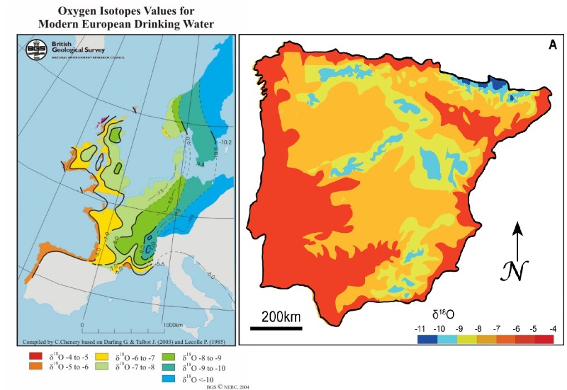 El valor de oxígeno δ18O presente en el arquero es de entre -9.0 y -10.0 , provenía de una región de clima más frío y más alejado a la costa que Gran Bretaña (la zona azul verdosa oscura del mapa de isótopos de oxígeno de Europa o la azul celeste de la Ibérica )