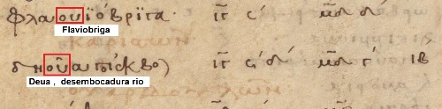 Los términos fonéticos indígenas llegaron a oídos de Tolomeo, desde las voces de soldados romanos, quedando dudas de su transliteración. Los topónimos que nombró en su Geografía nos hacen pensar que efectivamente quiso escribir δΗοῦα (déua) y no δΗβα (déba), el betacismo hizo el resto del trabajo.