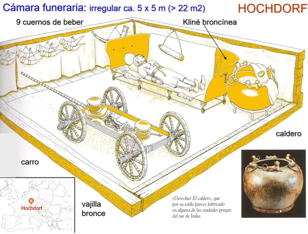 Entre el 720 al 600 a.C. se dieron en Europa una peculiar forma de enterramiento, eran los pueblos celtas de Halstatt C, en la región de los Alpes orientales (donde se enriquecieron con el comercio de la sal). Enterramientos al estilo faraónico, en una habitación de madera enterrada incorporaban a la tumba joyas, armas, carros, mobiliario de hogar, caballos, etc. y dando así una seña de identidad característica al pueblo Celta. Nada nuevo en Europa Occ., ya que es un tipo de enterramiento en la vieja Europa entre el Neolítico y la Edad de Bronce, la época megalítica dejo dólmenes (habitáculos cubiertos de tierra) con la misma función, la de una habitación funeraria enterrada.