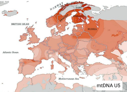 De aquella época existen ya algunas secuencias (mesolíticas) en el centro y norte de Europa, que muestran una notable uniformidad genética: todas son de los linajes mitocondriales llamados U4 o U5; entre estos últimos, muchos tenían el mismo haplotipo U5b2.Dicen que estos linajes tienen frecuencias bajas en los europeos actuales, generalmente alrededor del 5%, con la excepción de algunas poblaciones escandinavas, donde llegan al 40% de los Sami. Llegados a este punto me cabrea que se pase por alto o se omita la singularidad de cántabros, vascos y navarros.