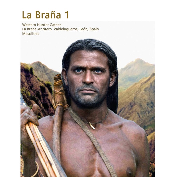 Como Braña1 se bautizó a uno de los dos individuos de 7.000 años de antigüedad, cuyos restos fueron recuperados en el yacimiento La Braña-Arintero, Valdelugueros (León), U5b2c1 es el tipo ADN mitocondrial (materno) que portaban y tenían los ojos AZULES y la piel oscura. El estudio fue dirigido por el investigador del CSIC Carles Lalueza-Fox, en colaboración con el Centre for GeoGenetics de Dinamarca. La Braña1 representa el primer genoma de un cazador-recolector europeo recuperado y de calidad.