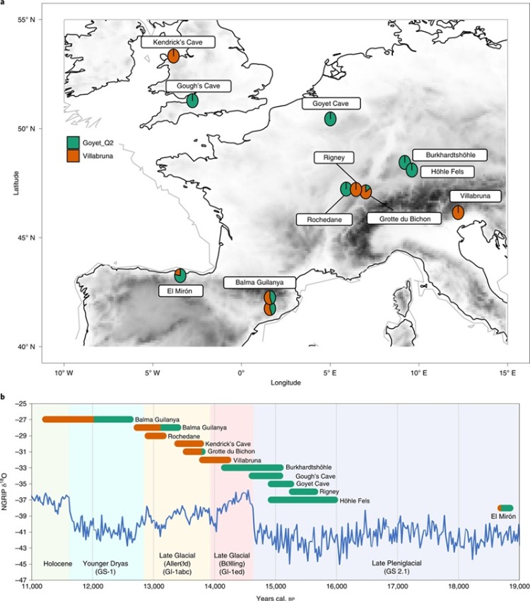 Después de un periodo de mejora climática ocurrido hace unos 14.500 años, el linaje magdaleniense desapareció y fue reemplazado por el proveniente del grupo Villabruna, que acabó extendiéndose por prácticamente toda Europa Occidental.