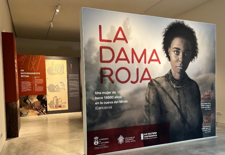 Hace 18.500 años, el cuerpo de la Dama Roja se colocó dentro de una cueva, de lado tras un gran bloque de piedra derrumbado, sobre el cual se realizaron algunos grabados lineales contemporáneos al depósito del cuerpo que se han interpretado como representaciones esquemáticas de una mano y de un triángulo púbico. En un estudio sobre DNA (seda) del 2024, asignaron con éxito DNA de renos y mamuts, además de dos muestras humanas (niveles 122 y 126) del haplogrupo U y otra perteneciente al haplogrupo R, típica del Pleistoceno superior en Europa.