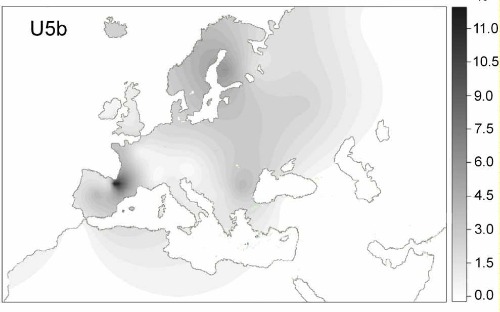 R1b es más frecuente en Europa occidental hoy en día y tiene un origen propuesto y una distribución geográfica actual muy similar al haplogrupo H del ADNmt (Myres et al., 2011),