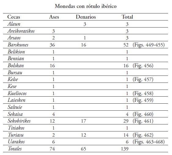 Las cecas “vasconas” citadas por Ptolomeo son: Alaun (Alagón en Zaragoza); Sekia (Ejea de los Caballeros, Zaragoza); Iaka (Jaca en Huesca; Kalakorikos (Calahorra en la Rioja) y Kaiskata (Cascante, Navarra). Otras monedas “vasconas” pero no citadas por Ptolomeo son, Baskunes o Barskunes; Arsaos; Bentian; Sesars; Arsakos-on; Omtikes; Tirsos; Umanbaate y Olkairun.