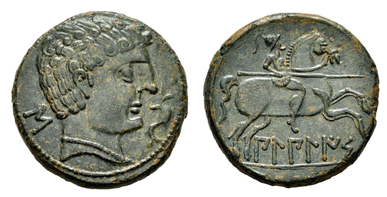 Este ejemplo último, que vemos en la imagen, es de un plomo encontrado en el oppidum de Pech Maho, situado en la región de Occitania francesa. (REF. Hesperia: AUD.05.38. REF. MLH: B.7.38.)
