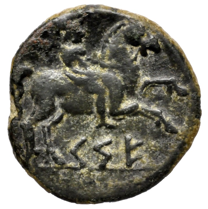 Varias cecas ibéricas suman este glifo, fuera de su raíz toponímica y solo en determinadas emisiones tardías de la ceca. Como final de leyenda numismática, siendo también sospechosa su aparición aislada sin contexto alguno en ellas, pudiendo significar una “marca” de registro, calidad, abreviatura, pesaje o cantidad.